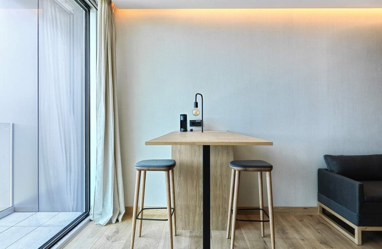 - Mesa alta delante del ventanal.